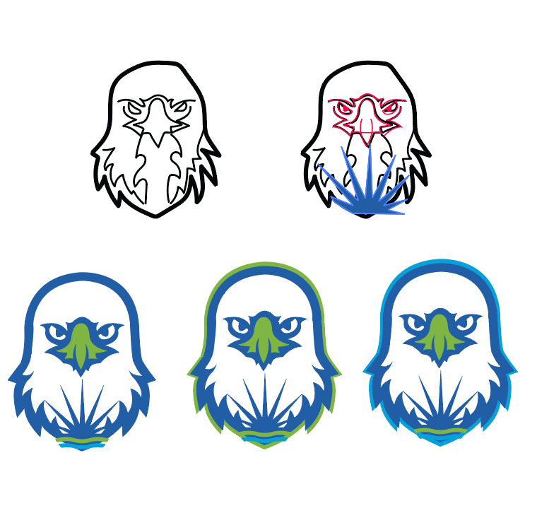 My research also involved reviewing competitor logos and brand marks. This included noting industry trends and brand guidelines. It was important to me that the new mascot logo would be relevant to other school districts while also holding a unique value.
