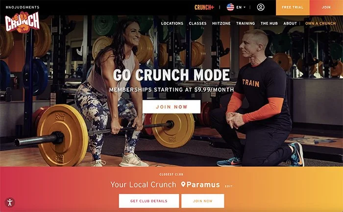 The inspiration for this website redesign is influenced by the clean lines, impactful full-length images, and organized grid structure. This style is commonly found on popular workout facility websites such as Crunch Fitness, CrossFit, and Planet Fitness. A more modern approach aims to create a visually engaging and user-friendly online space, reflecting the precision of Volt Fitness's training programs while drawing inspiration from successful industry leaders.